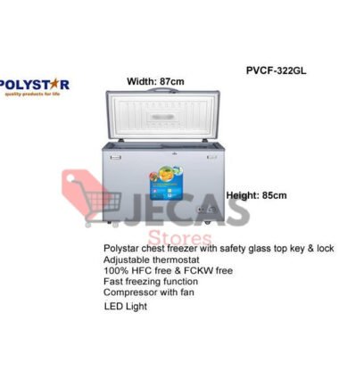 Polystar 322GL Chest Freezer with Safety Glass Top And Key Lock – Silver