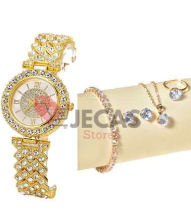 Women’s Watch + Necklace+ Earring+ Ring + Bracelet – Gold