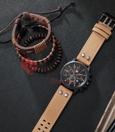 4-piece Men’s Watch And Bracelet Set, Watch Series, Perfectly Paired With Necklace And Ring