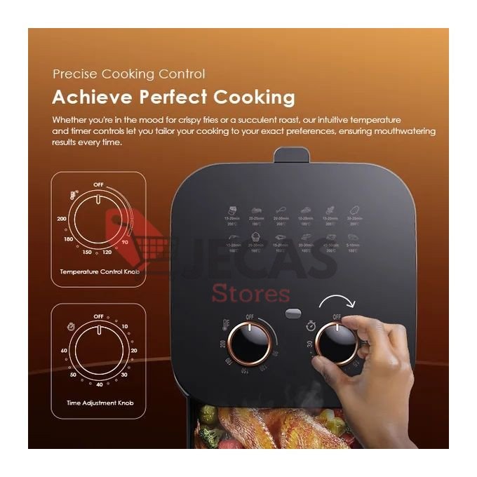 Precise Cooking ControlAchieve Perfect CookingWhether you’re in the mood for crispy fries or a succulent roast, our intuitive temperature and timer controls let you tailor your cooking to your exact preferences, ensuring mouthwatering results every time.