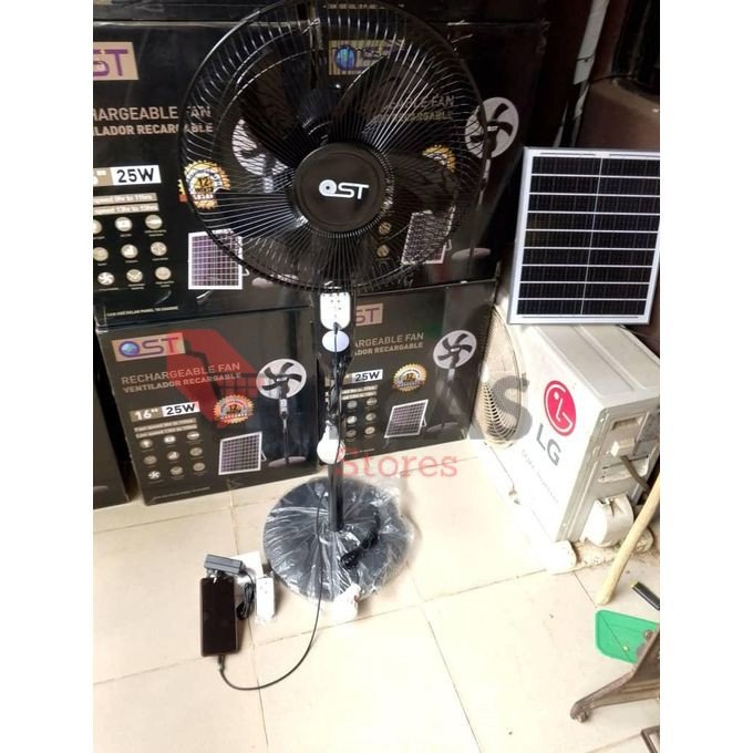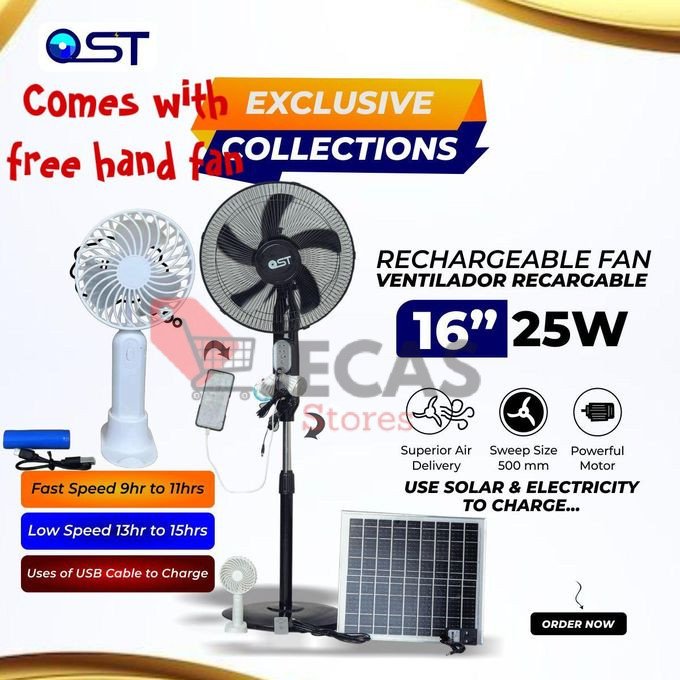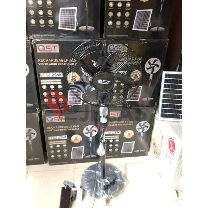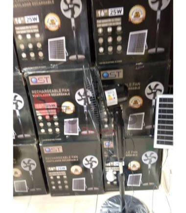 This Ost Fan solar rechargeable standing fan is a UK quality standard that passed all quality check , its is CE approved and UKBA approved. Ost solar fan is a must-have for anyone looking to stay cool and comfortable even during power outages. With a 16-inch solar panel, lamp, and Lithium battery, this fan is perfect for outdoor activities, camping, and emergency situations. The fan is designed to operate on both AC and DC power, making it an ideal choice for those who are always on the go. The fan is made by a well-known brand that specializes in solar-powered products. It is a hybrid system configuration, which means that the fan can be operated on both solar power and electricity. The fan is portable and can be easily moved around. It is a great addition to any home, garden, or office.