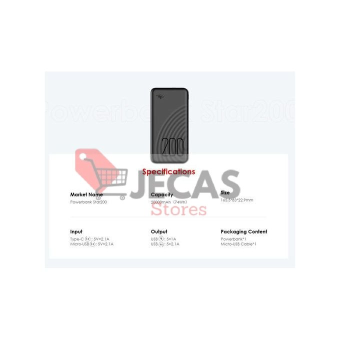 20,000mAh Strong CapacityWith Bright LED TorchMicro USB & Type-C Dual InputUp to 2.1A Fast Charging for Two12 Months Warranty by CarlcareAnti-Slip TextureCertified Safe: Itel Superior Safety