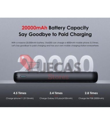 20,000mAh Large Capacity – multiple charges for smartphones and gadgets