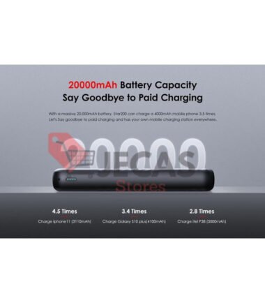 With a massive 20,000mAh battery, Star200 can charge a 4000mAh mobile phone 3.5 times.