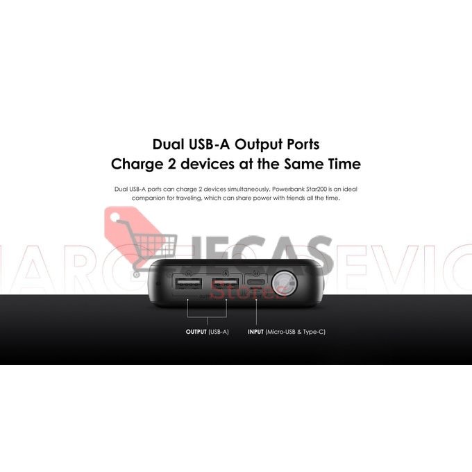 Dual USB-A ports can charge 2 devices simultaneously. Powerbank Star200 is an ideal companion for traveling, which can share power with friends all the time.