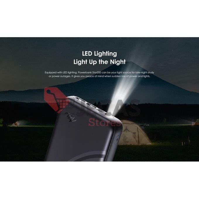 Equipped with LED lighting, Powerbank Star200 can be your light source for late-night study or power outages. It gives you peace of mind when sudden loss of power and lights.