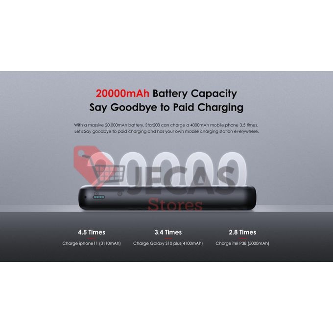 With a massive 20,000mAh battery, Star200 can charge a 4000mAh mobile phone 3.5 times.