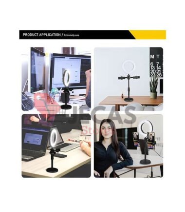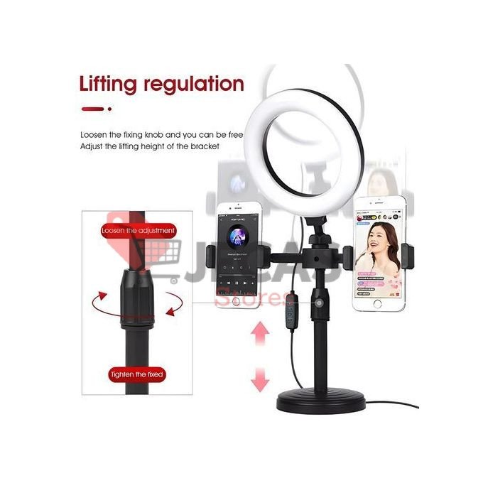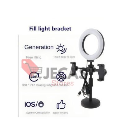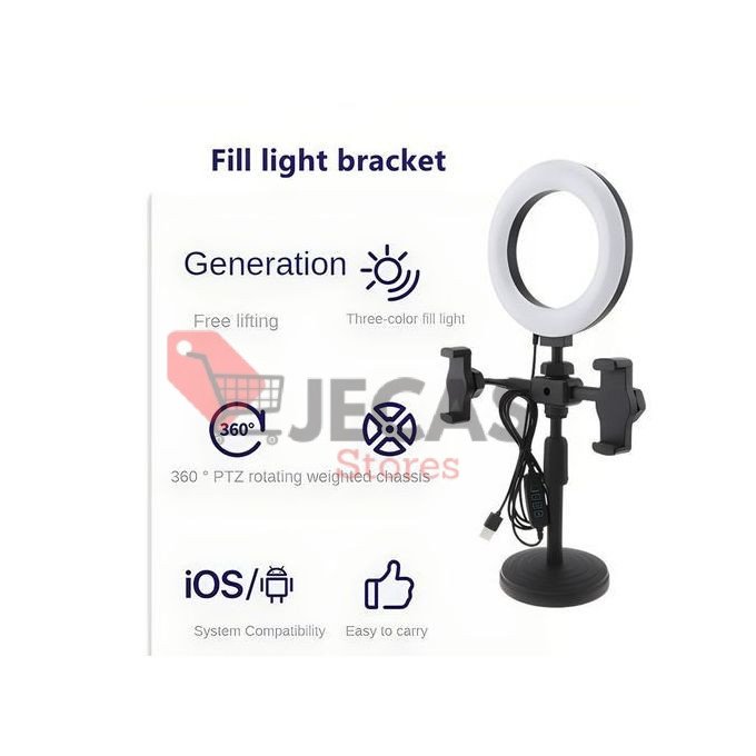 1. Height-adjustable bracket with an adjustable range of 32-42cm ,have two mobile phone clips to meet your needs.2. Elegant and stylish design,lightweight, protable, whether it is live broadcast, video chat or games, it is a good helper.3. Easy to install and the intimate disc base design is very stable.4. Mini body, high-quality LED ring light, fill light is simple to complete, let you keep beautiful at all times.