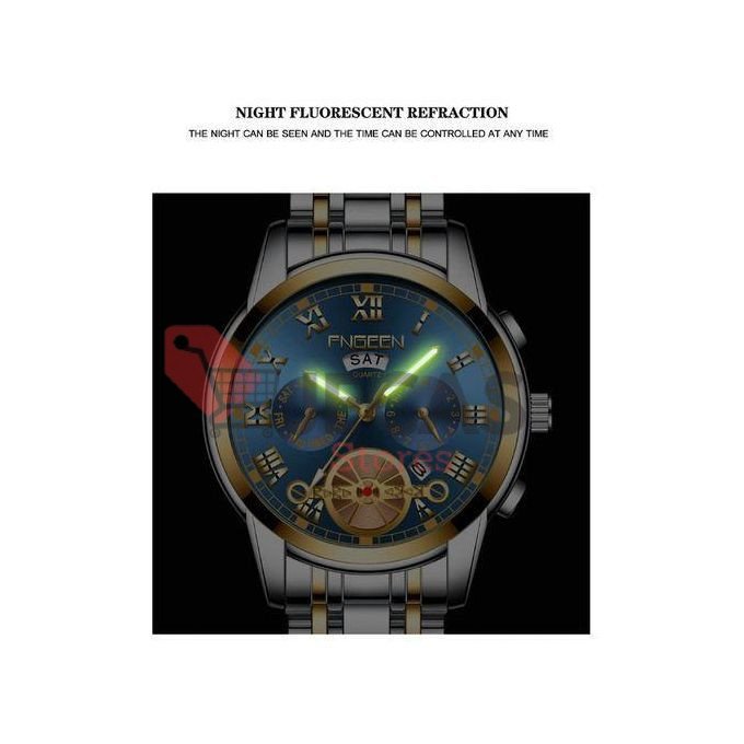Men's Quartz Steel Band Watch With Waterproof Night Light And Anti Drop Glass Watch-golden Original price was: ₦13,673.00.Current price is: ₦13,399.54.