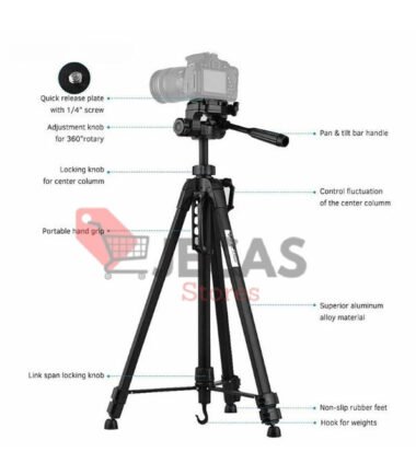 The tripod stand comes with a pan head, designed for outdoor photograph activities. Not only its lightweight, but also its flexible handling, that makes your trip more enjoyable. It’s extended up to 140cm, folded to 52cm. Quick release plate and 1/4″ screw with geared elevator. 3-section aluminum legs with brace. Plus, a carrying case is included. tripod stand comes with a pan head, designed for outdoor photograph activities. Not only its lightweight, but also its flexible handling, that makes your trip more enjoyable.. Quick release plate and 1/4″ screw with geared elevator. 3-section aluminum legs with brace. Plus, a carrying case is included. tripod stand comes with a pan head, designed for outdoor photograph activities. Not only its lightweight, but also its flexible handling, that makes your trip more enjoyable. . Quick release plate and 1/4″ screw with geared elevator. 3-section aluminum legs with brace. Plus, a carrying case is included.