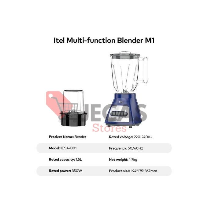 itel M1 Blender – 1.5L Jar – 350W Pure Copper Motor – Multi-Function – Easy Blending & Grinding – Durable Stainless Steel Blades