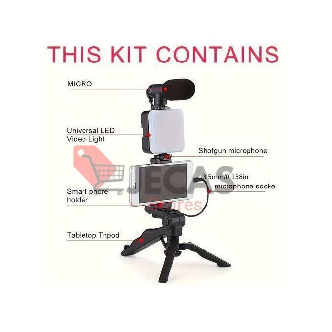 This is a kit combination: it contains a microphone, LED light, tripod, and mobile phone clip. This combination of them can make your beauty and handsomeness appear more naturally and smartly.