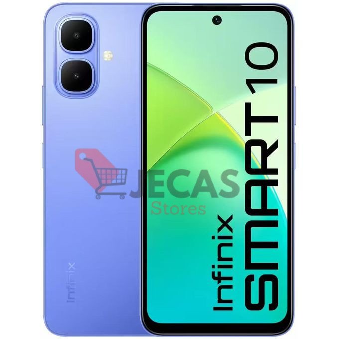 The Infinix Smart 10 is an entry-level smartphone with a 6.6-inch HD+ display, a 90Hz refresh rate, and a Unisoc T606 processor. It comes with 3GB of RAM (expandable virtually) and 64GB of storage, along with a 5000mAh battery and Android 14 (Go edition). The phone also features an 8MP front and 13MP rear camera.