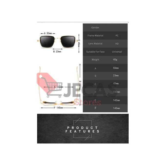 Specifications: High Quality! Type: Steampunk Sunglasses Style: Steampunk Sunglasses Lens Material: Polycarbonate Lens Technology: UV Protection, Anti-Reflective Frame Material: Metal Color: Black-Black, Gold-Black, Gold-Brown, Gold-Yellow, Silver-Light blue, Silver-Red, Silver-Green, Silver-Blue, Silver-Black, Black-Red, Black-Yellow , Black-Light blue Polarization Type: Non-Polarized Product Size: Total Width: 145mm (5.71inch) Frame Width: 50mm (1.97inch) Frame Height: 45mm (1.77inch) Nose Bridge Width: 23mm (0.91inch) Temples Length: 150mm (5.91inch) Weight: 40g (1.41oz) Package Included: 1 x Sunglasses Note: 1. There is a 2-3% difference according to manual measurement. Please check the size carefully before you buy the item. 2. Please note that a slight color difference should be acceptable due to the light and screen.