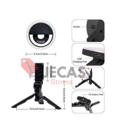 Be the first to review “Tripod Stand With LED Ring Light For Phones Plastic-Black”