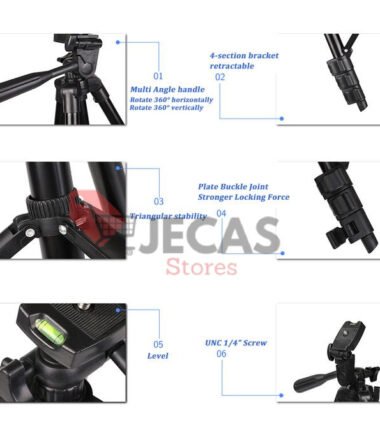 The tripod is perfect for taking photos at birthday party, family dinner, company party, camping or sightseeing . Made of the best aluminum alloy with only 0.8 lbs (360g), super light to carry Reliable Stability: Non-slip rubber feet for uneven floors. Special triangular structure to support more weight up to 4.4 lbs (2.0 kg), strong enough for iPhone / Galaxy / Huawei or other entry level brand, Go pro and SLR smartphones. : Universal bluetooth allows photos to be taken at a distance of up to 30 feet, a universal smartphone holder that fits almost all types of phones on the market, and a standard Go pro mount.Compatibility: 3 section adjustable aluminum alloy legs with quick release locks, fully extended up to 42 inches , minimum height 13 inches (34 cm). 360 ° horizontal and 90 ° viewing angle in vertical rotation. a tripod of choice for taking beautiful photos or making interesting videos.