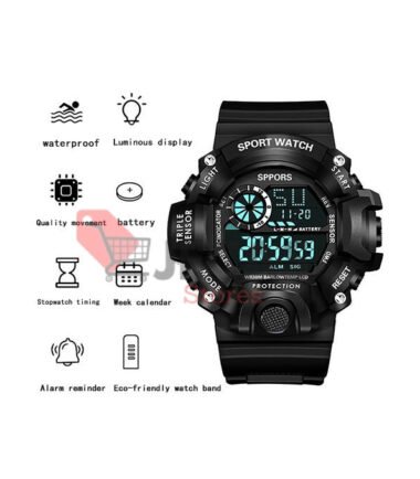 Electronic Sports Digital Watch Function Light Alarm Clock – Black