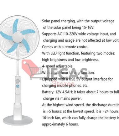 Rechargeable Standing Fan(C168) + Solar panel-White