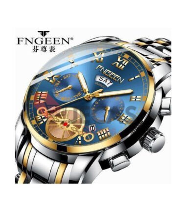 Fngeen – Men’s Quartz Watch Multi Functional Steel Band Watch-Silver